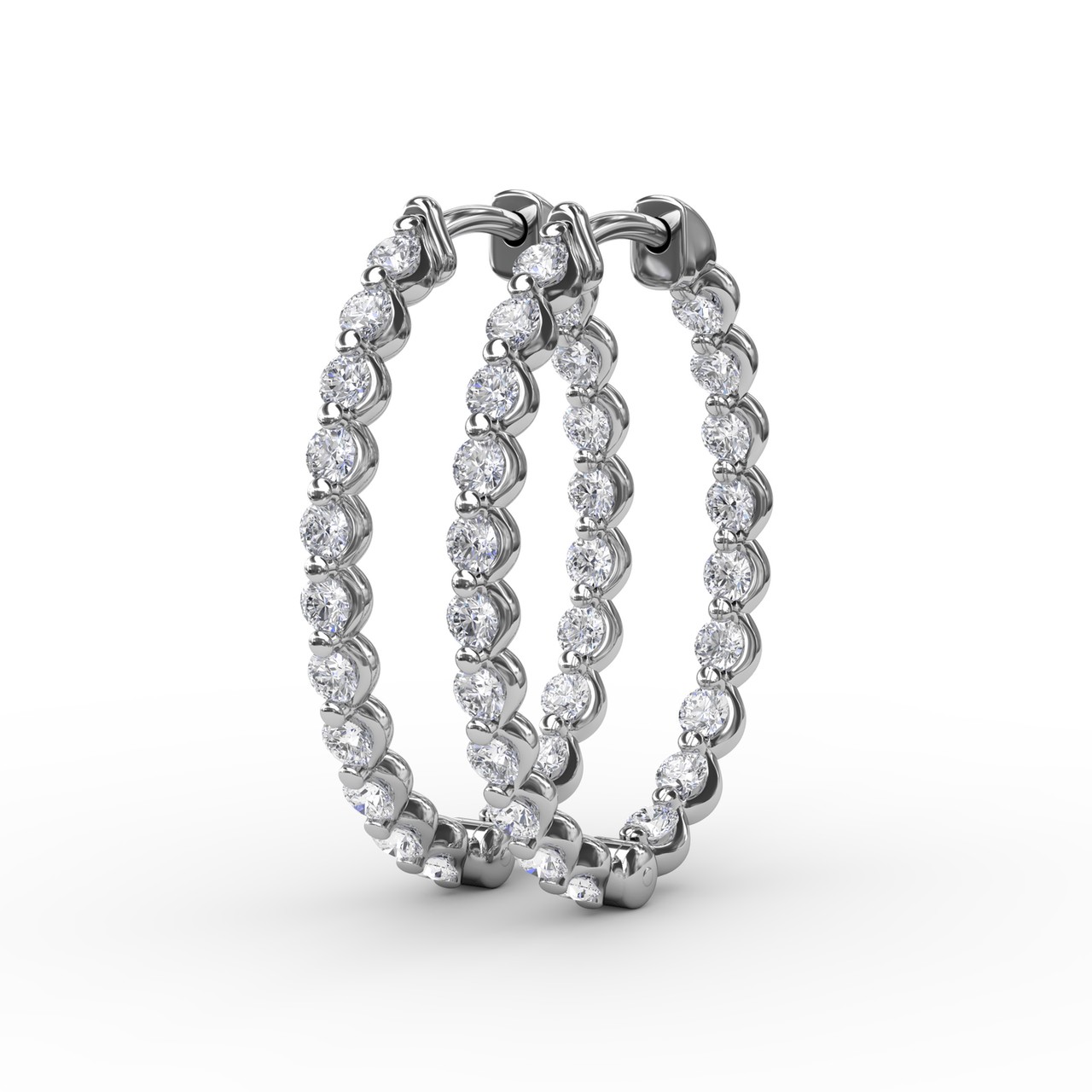 These 1.4ct diamond hoop earrings come in a variety of material types like 14k white gold, yellow gold, White gold and can be customized. Classic Fana diamond earrings are perfect for that special woman in your life.