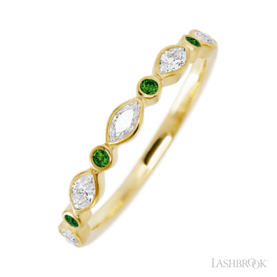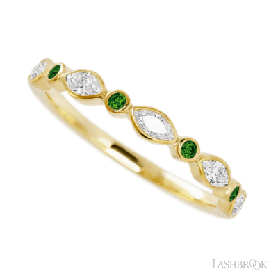 10K Yellow Gold band with alternating 4 Round Green Diamond and 5 Marquise Lab Grown Diamond having TCW-.56