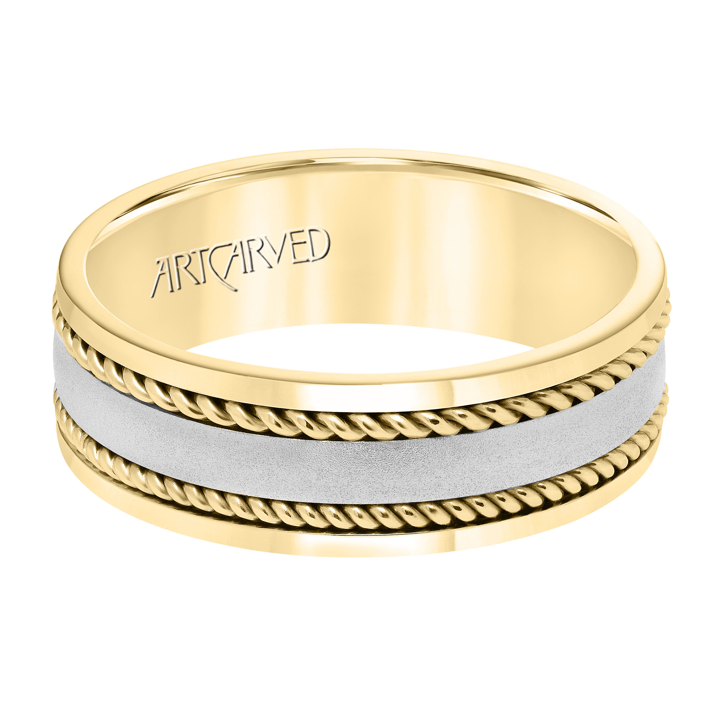 11-WV8731YW7-G.00 – ARTCARVED – 7MM Wedding Band with Satin Finish, Rope Inlay Detail and Polished Edges