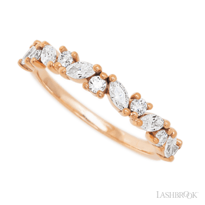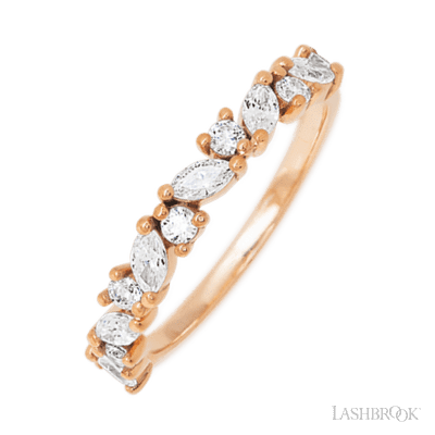 14K Rose Gold band with 7 Round and 6 Marquise Lab Grown Diamond having TCW-.81