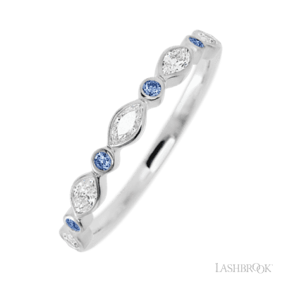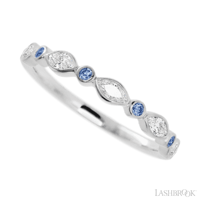 14K White Gold band with alternating 4 Round Denim Sapphire and 5 Marquise Lab Grown Diamond having TCW-.56