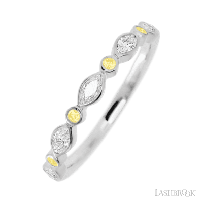 14K White Gold band with alternating 4 Round Light Yellow Sapphire and 5 Marquise Lab Grown Diamond having TCW-.56