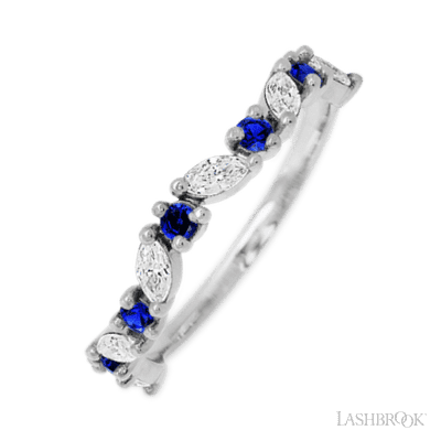 14K White Gold band with alternating 6 Round Sapphire and 5 Marquise Lab Grown Diamond having TCW-.68