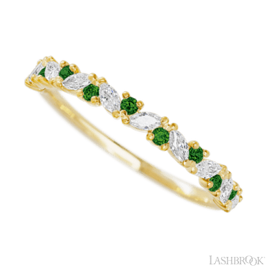 14K Yellow Gold band with alternating 9 Round Green Diamond and 8 Marquise Lab Grown Diamond having TCW-.38