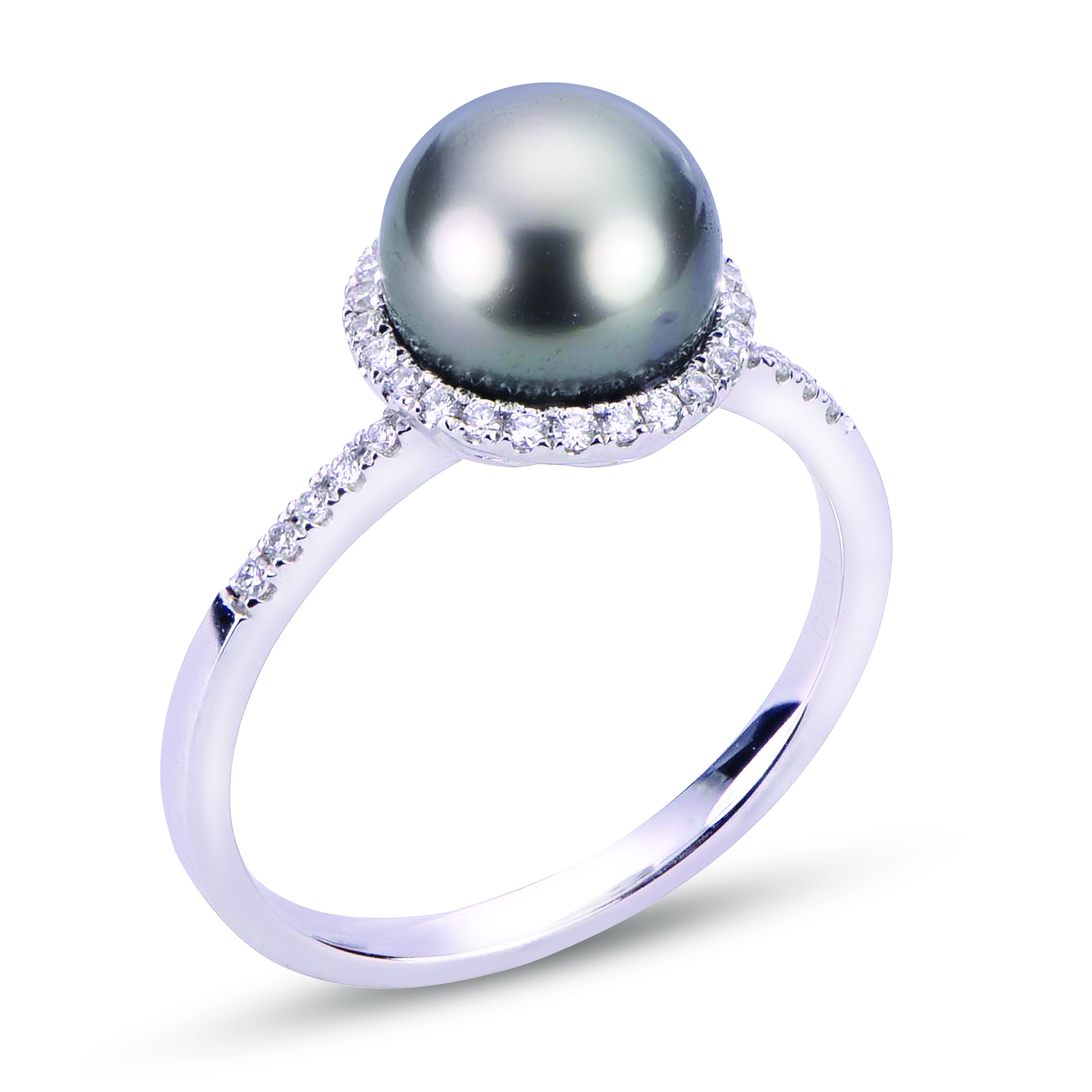 14KW 8-9MM TAHITIAN & DIA (.175 CTTW) “HALO” RING- FILIGREE BACK