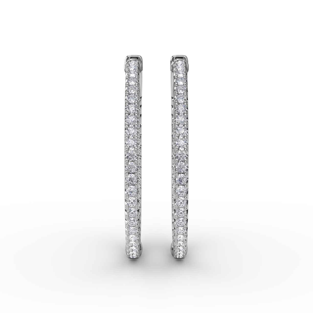 These 2.10ct diamond hoop earrings come in a variety of material types like 14k white gold, yellow gold, White gold and can be customized. Classic Fana diamond earrings are perfect for that special woman in your life.