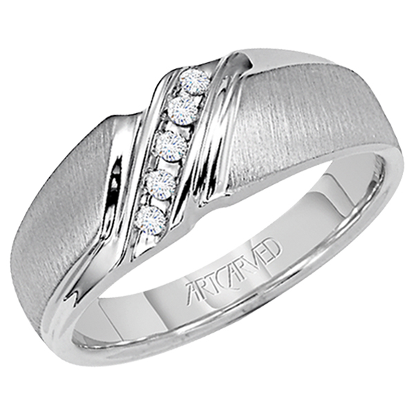 21-V22023W-G.00 – ARTCARVED – Comfort Fit weddding band with tension set diamonds and vertical brushed finish