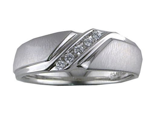 Comfort Fit weddding band with tension set diamonds and vertical brushed finish