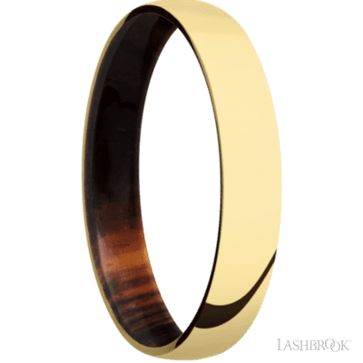 4 mm wide Domed 14K Yellow Gold band featuring a Cocobolo sleeve.
