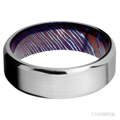 7 mm wide Beveled Cobalt Chrome band featuring a Titanium Damascus sleeve.