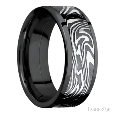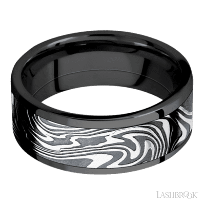 8 mm wide/Flat/Zirconium band with one 6 mm Centered inlay of Kinetic.