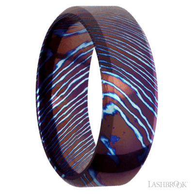 8 mm wide High Bevel Titanium Damascus band.