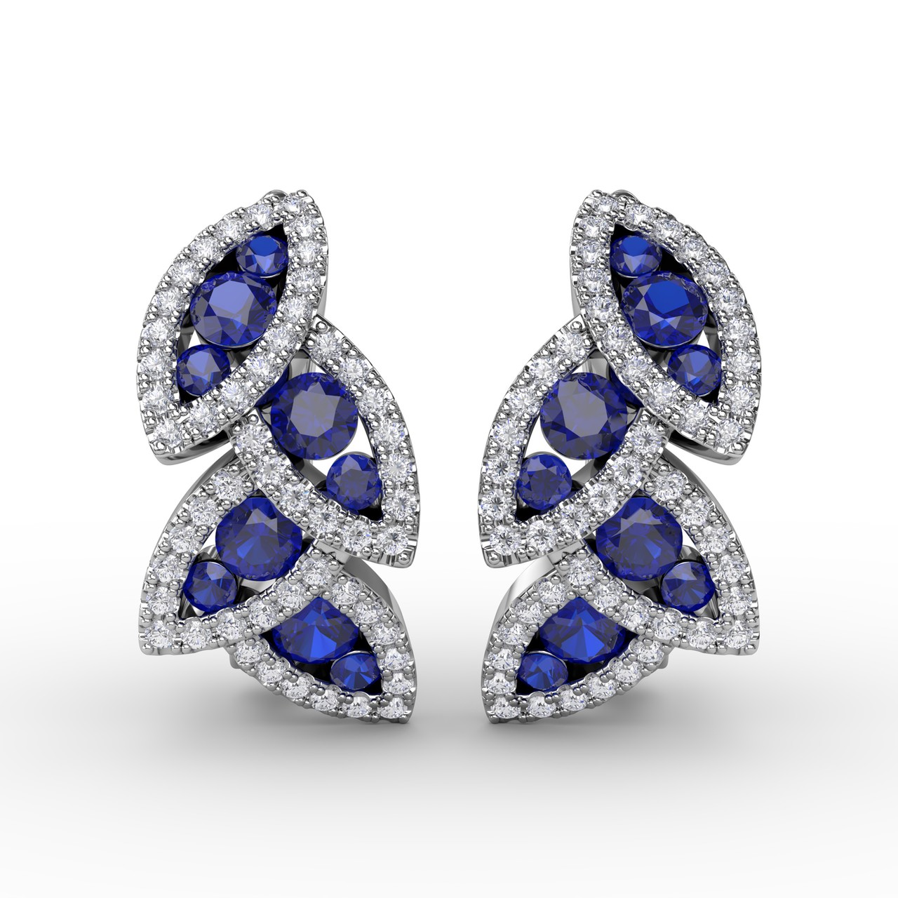 Glam Galore Sapphire and Diamond Leaf Earrings