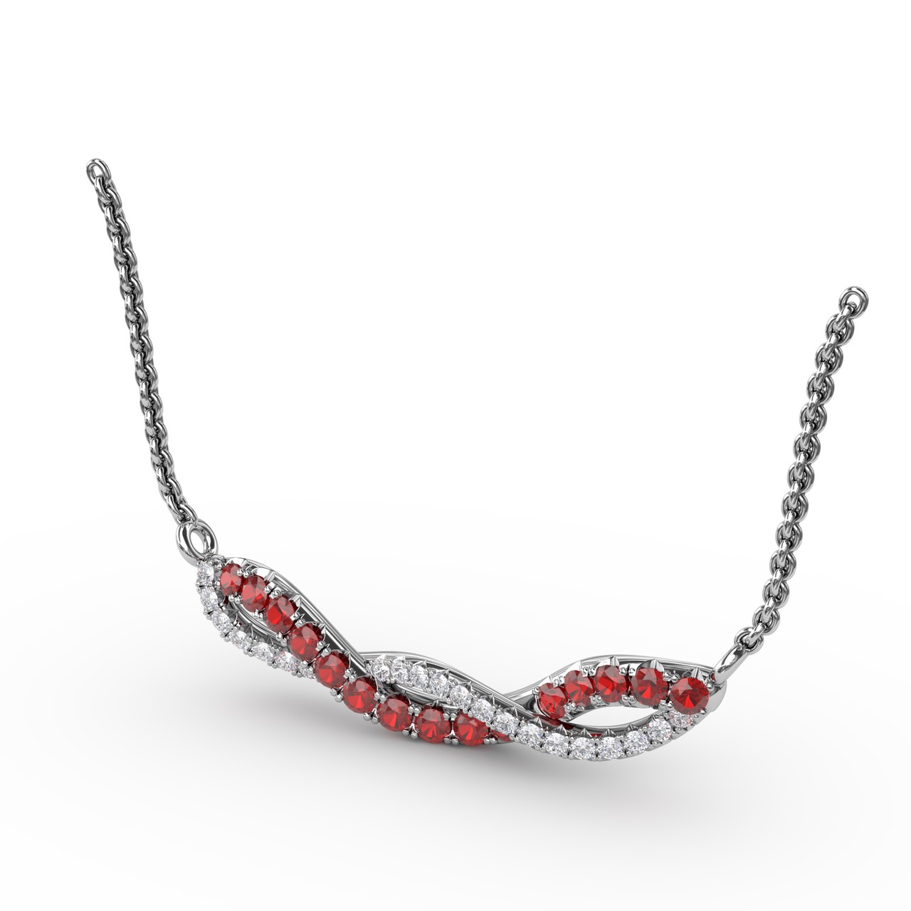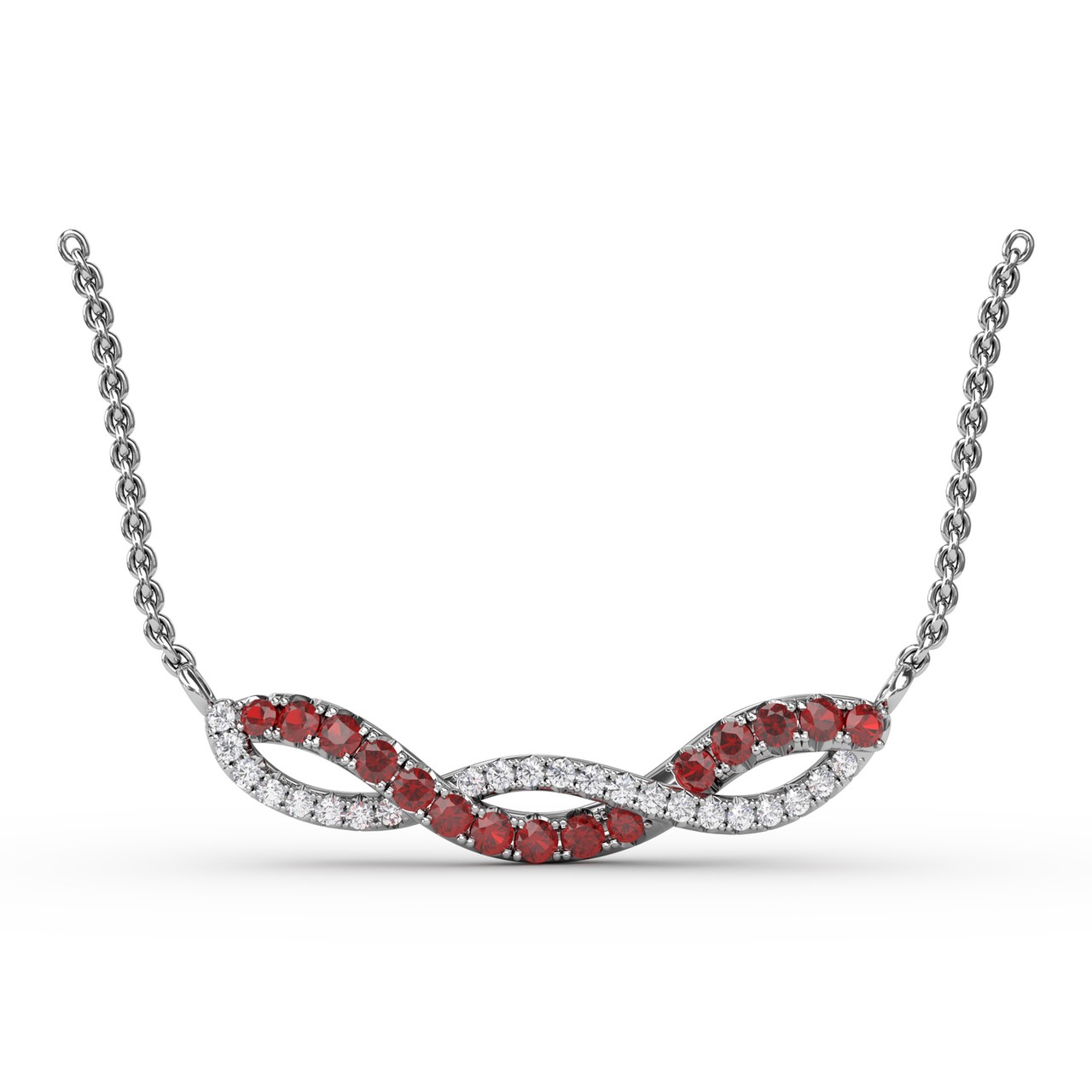 This emerald and diamond twist pendant comes in a variety of material types like 14k white gold, yellow gold, White gold and can be customized. Fana gemstone pendants are perfect for that special woman in your life