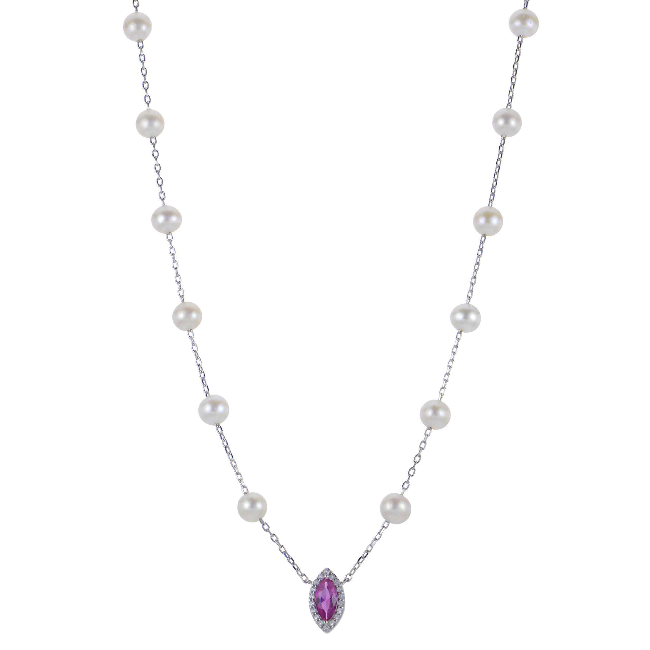 (18″ ADJ 16″ 925 5-6MM FWCP CRT PINK SAPPHIRE & WHITE TOPAZ NECKLACE)