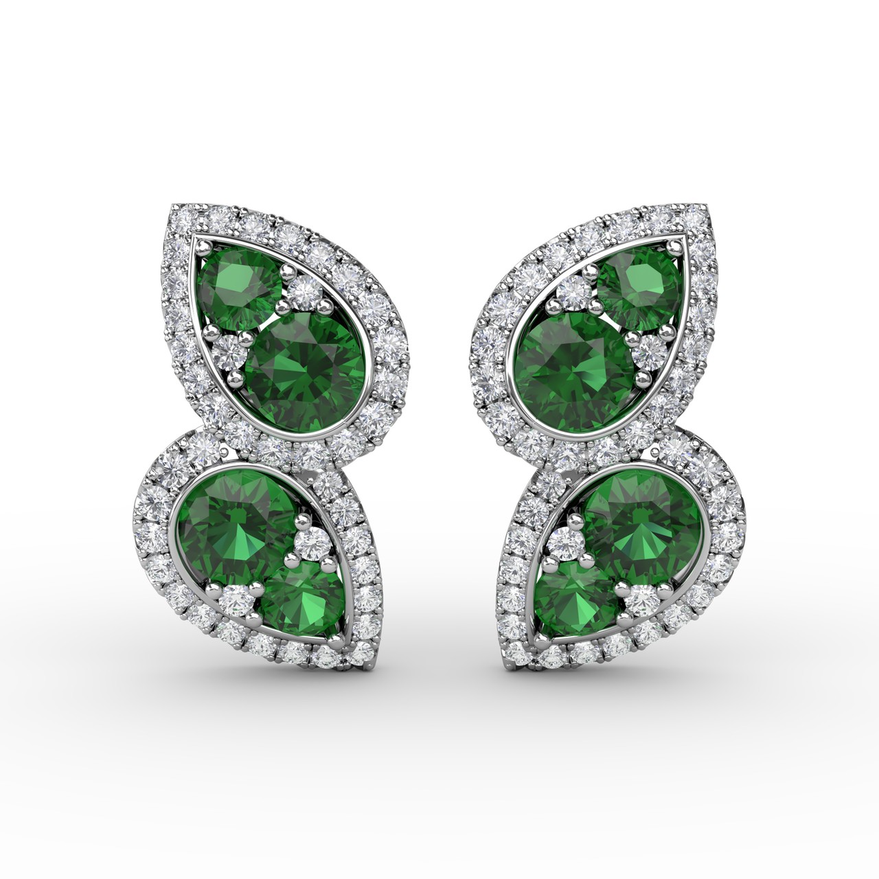 These teardrop emerald and diamond earrings come in a variety of material types like 14k white gold, yellow gold, White gold and can be customized. Fana diamond earrings are perfect for that special woman in your life.