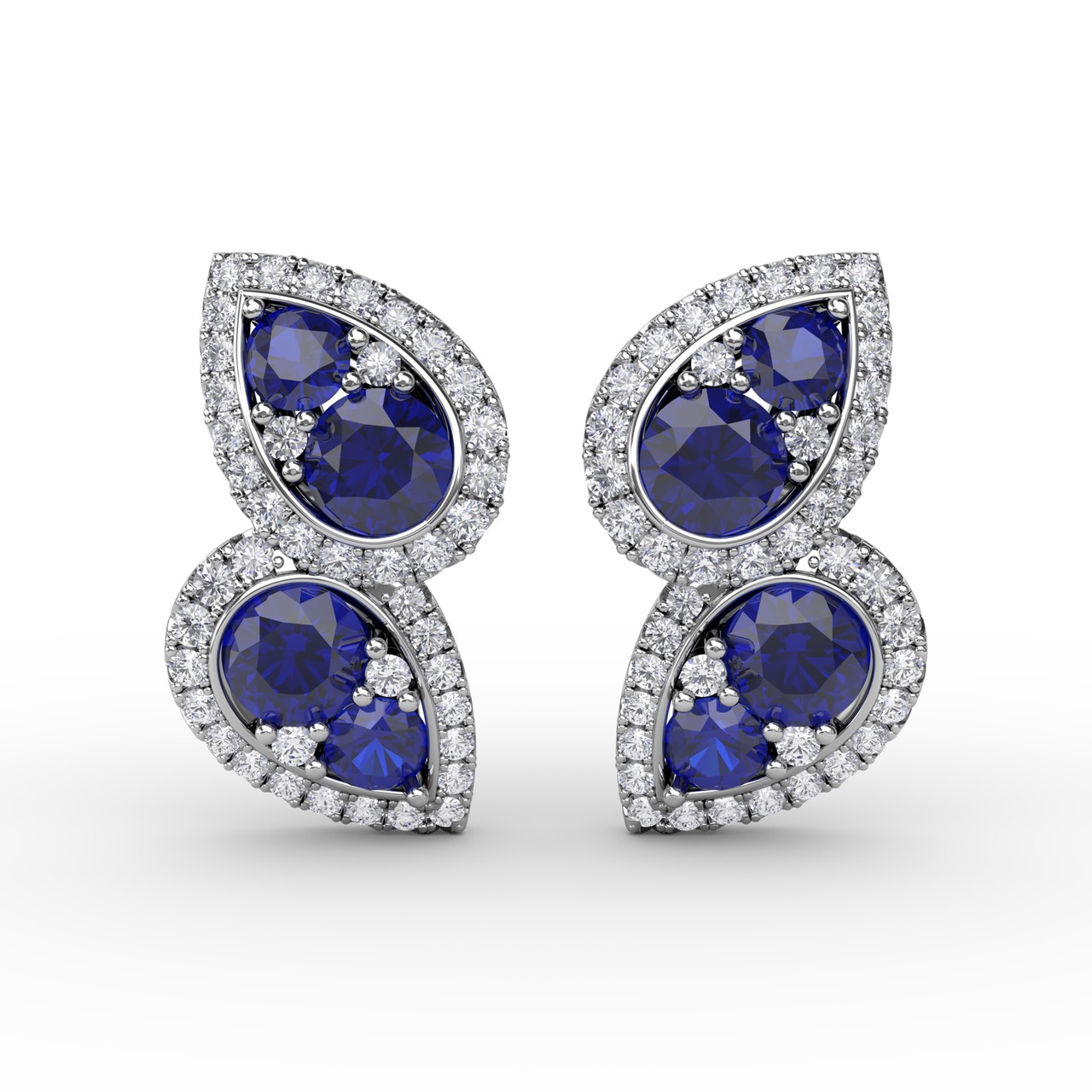 These teardrop sapphire and diamond earrings come in a variety of material types like 14k white gold, yellow gold, White gold and can be customized. Fana diamond earrings are perfect for that special woman in your life.