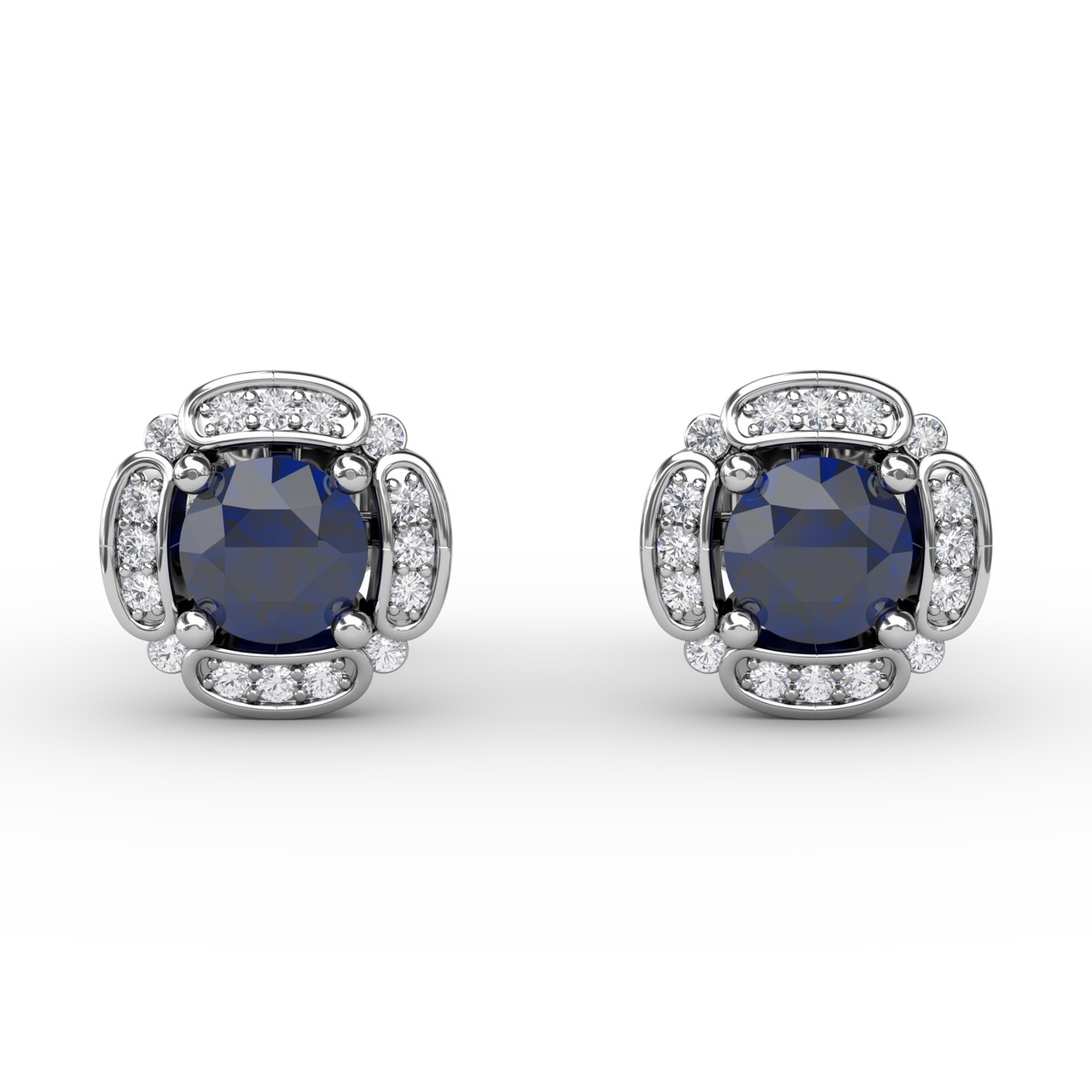These vintage channel set sapphire and diamond stud earrings come in a variety of material types like 14k white gold, yellow gold, White gold and can be customized. Classic Fana gemstone earrings are perfect for that special woman in your life.